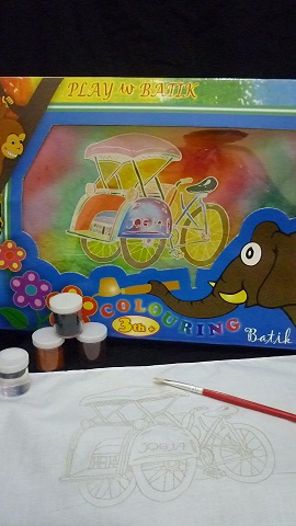 paket sudah termasuk kain, pola, malam dan kompor, lilin, pewarna dan kuas serta larutan pengunci.