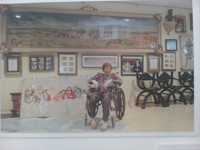 Foto karya Dirga, Ibu Dewi Nugroho diantara sulamannya.